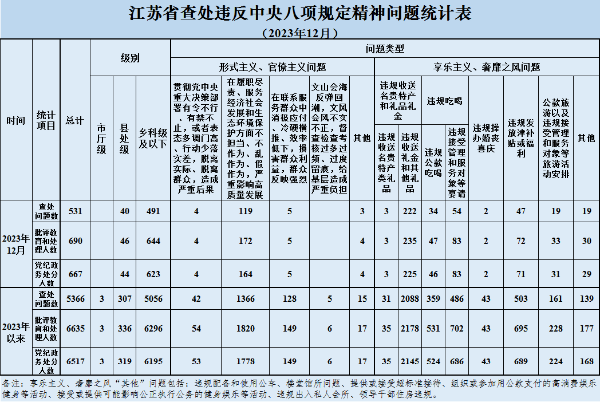 2023年12月全省查处违反中央八项规定精神问题531起